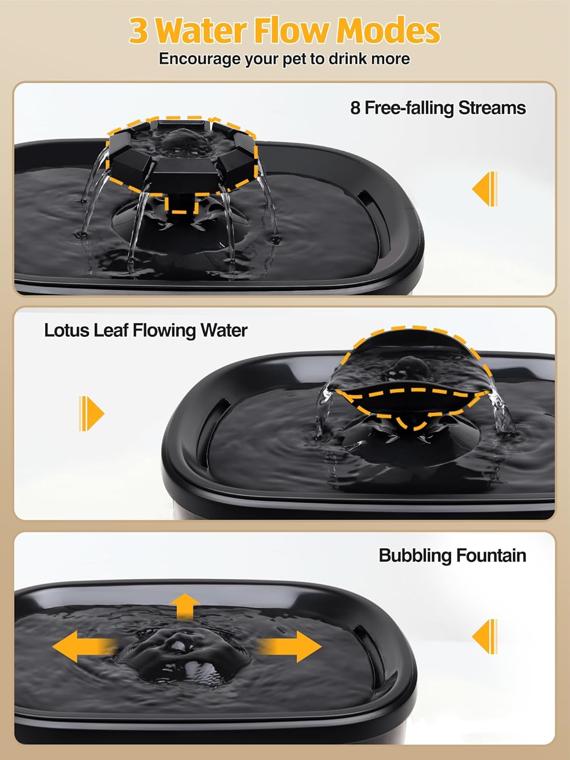 - [9.5L/2.5GAL Large Capacity] SIBAYS large dog water fountain with 2.5gal volume is perfect solution for all breed dogs & cats and multiple pets drinking. Water automatically loops and flows for fresh water to the upper and attract pets to drink. Dogs and cats prefer drinking flowing water.