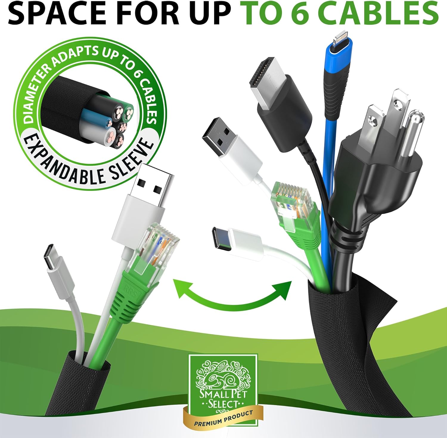 - EXPANDABLE SLEEVE: A convenient side slit allows you to easily slide additional cords in to keep up to six cables safe and organized. The wire wraps expand and contract to fit your organization needs perfectly whether you are protecting a single phone charger or a bundle of cords under a desk.