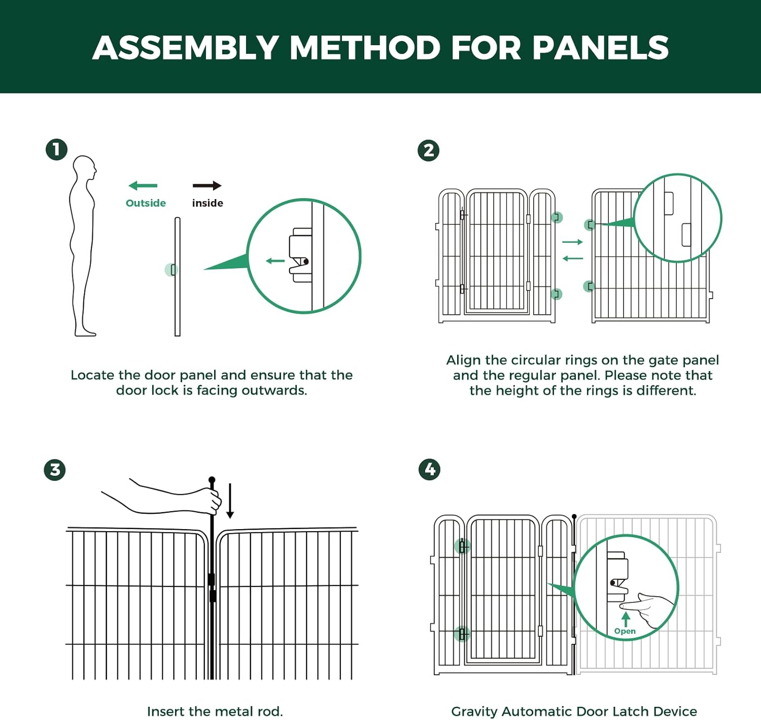 - Full-Metal Design with Elegant Aesthetics: The dog gate is made from full-metal material. The accompanying Fence-to-Wall anchors securely fastens the panels to the wall, ensuring a highly stable structure even when set up as a closed-loop play area. Its sleek lines and metallic texture blend seamlessly with a variety of home decor styles, creating a balance of functionality and aesthetics.