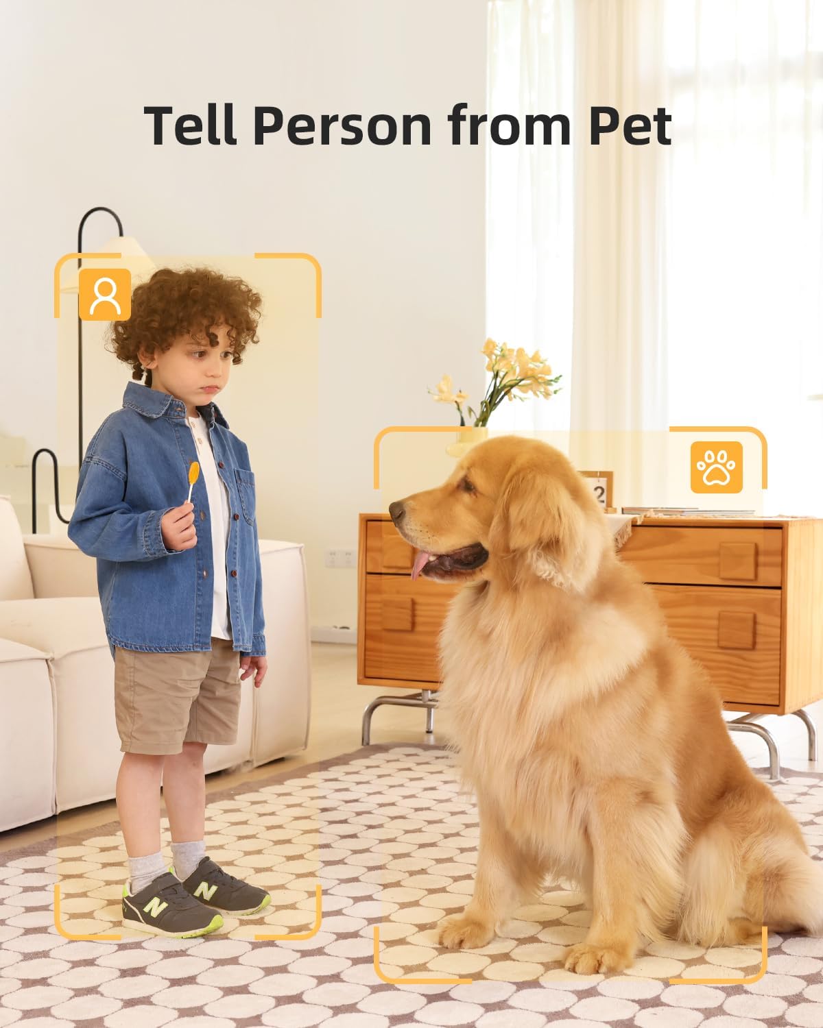 - AI Pet Camera & Puppy Monitor with Phone App Alerts - Recognizes dogs, cats, and people instantly; sends real-time notifications to your phone with video clips. Customize motion zones and pre-record voice alerts to comfort pets.