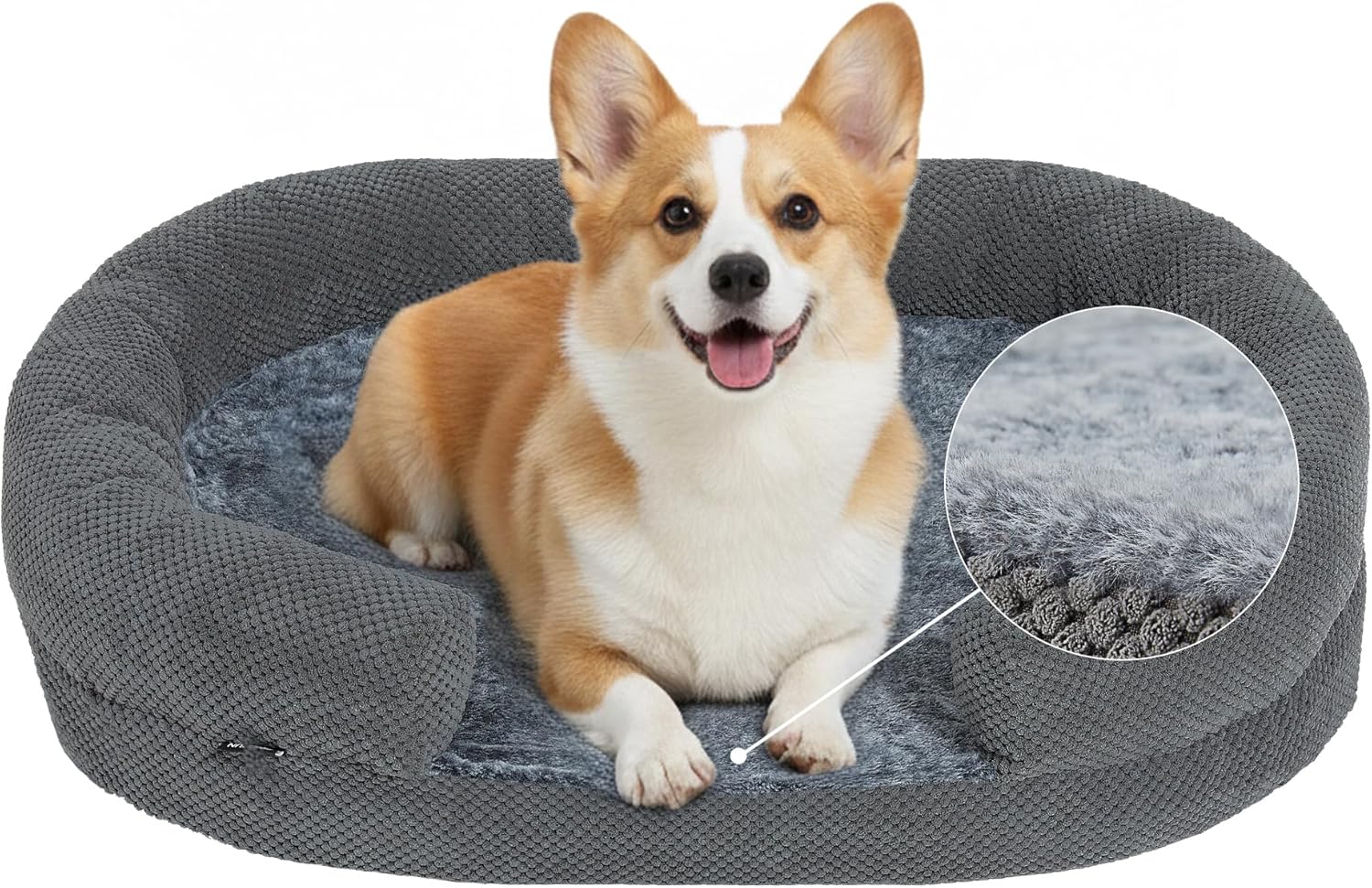 Orthopedic Dog Bed for Medium Dogs, 35" Oval Couch Bed with Sides and Soft Egg Crate Foam, Calming Washable Pet Bed with Anti-Slip Bottom, Durable Cuddler for Sleeping, Grey (35")