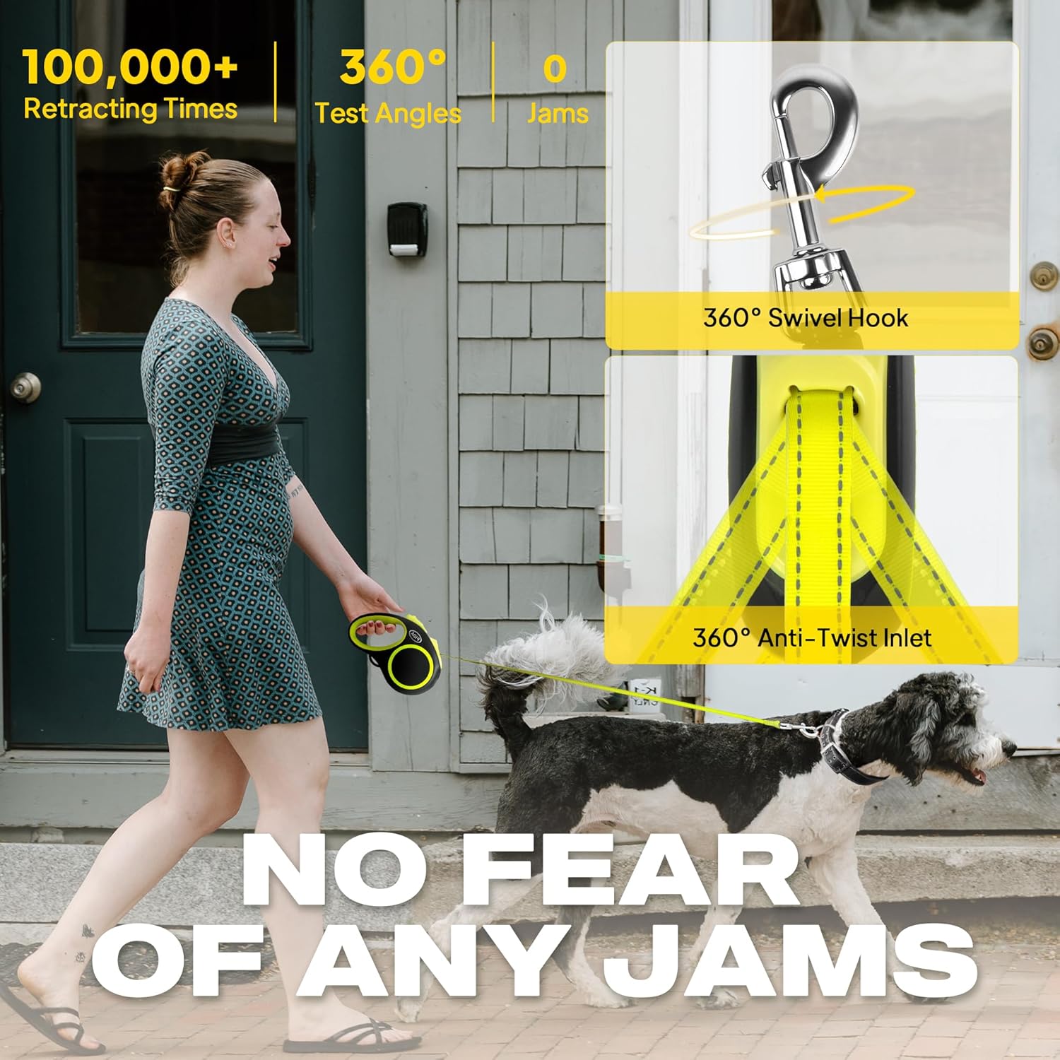 - 【No More Tangles】: Say goodbye to tangled leashes! This retractable dog leash features a tangle-free design that ensures smooth retraction and extension of the leash without any snags or twists along the way. With this innovative feature, you can enjoy hassle-free walks without having to constantly untangle knots on your dog's leash.