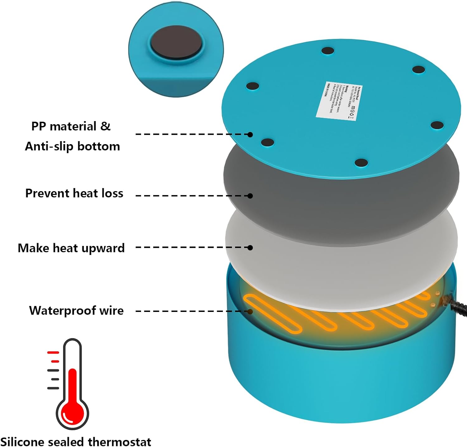 - Heat Quickly & Evenly: The method of use is very simple, plug it in and use it. After power on, the heated water will come on, keep the water temperature between 97℉- 100℉. The heating water bowl keeps water from freezing in winter, it provides drinkable water for pet during the winter no matter what the weather.