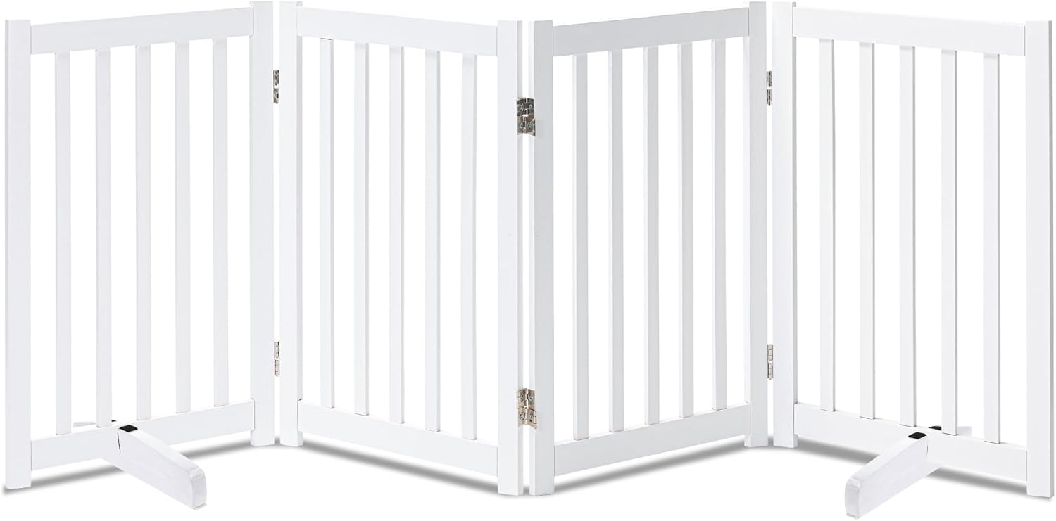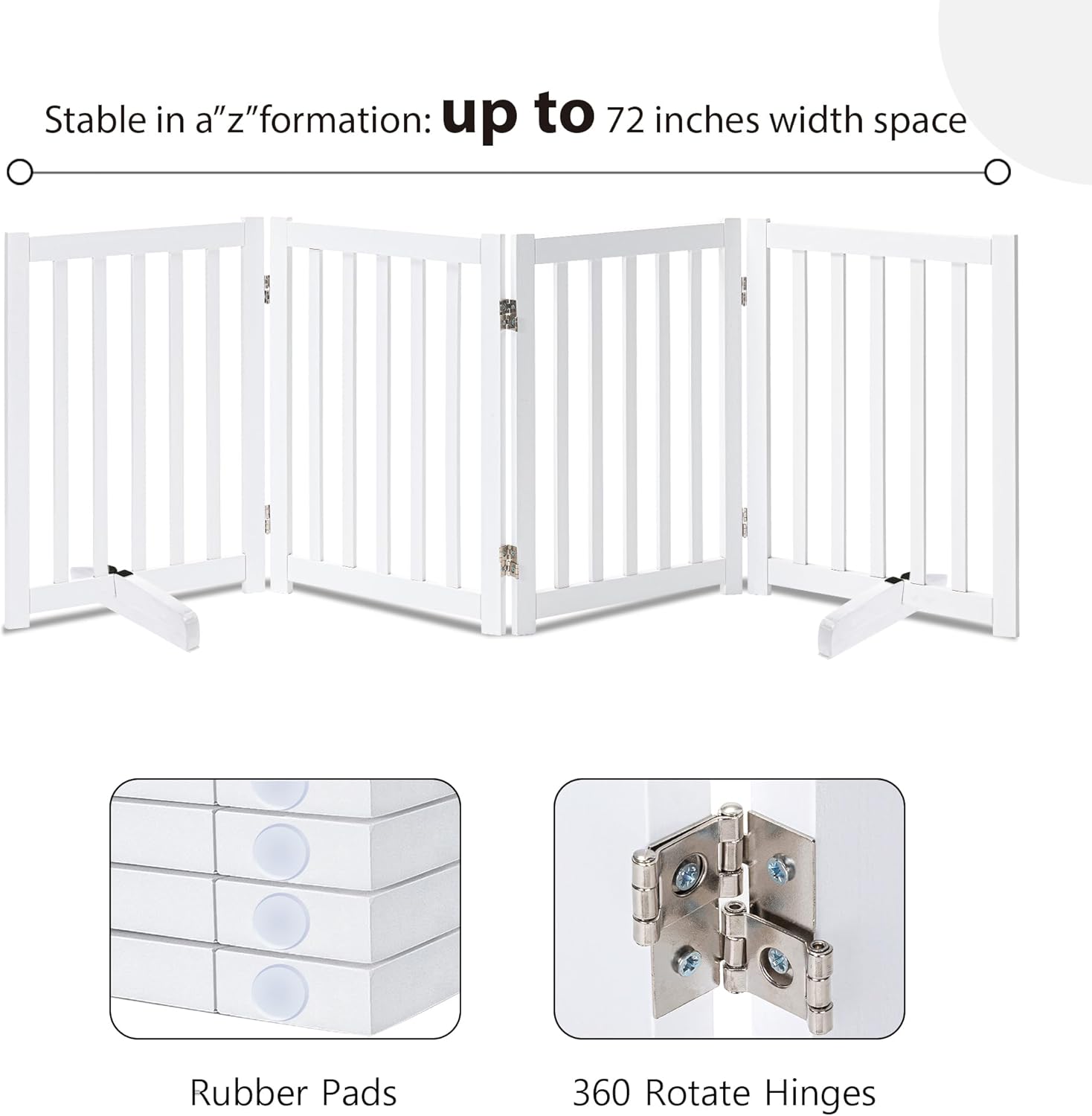 LZRS Solid Hardwood Freestanding Pet Gate,Wooden Dog Gates Indoor for Doorways,Nature Wood Dog Gates for The House,Stairs,Safety Fence,White,30" Height-4 Panels