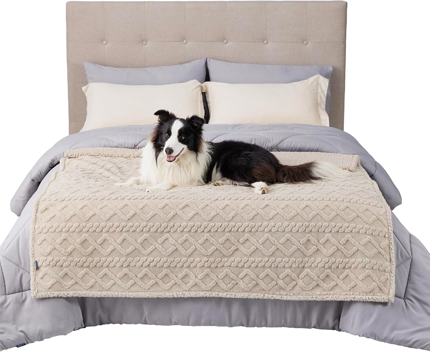 Bedsure Waterproof Dog Blankets for Large Dogs - Pet Blanket for Couch Protector Washable, Premium Jacquard Coral Fleece Cat Throw Blanket, Soft Plush Reversible Furniture Protection, 50"x60", Cream