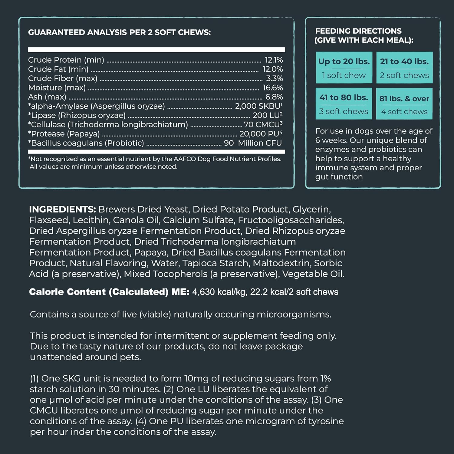 - A Powerful Blend of Probiotics: Our vet-formulated soft chews harness the power of probiotics and digestive enzymes to help promote proper gut function and nutrient absorption. Your dog will wag their tail in joy!