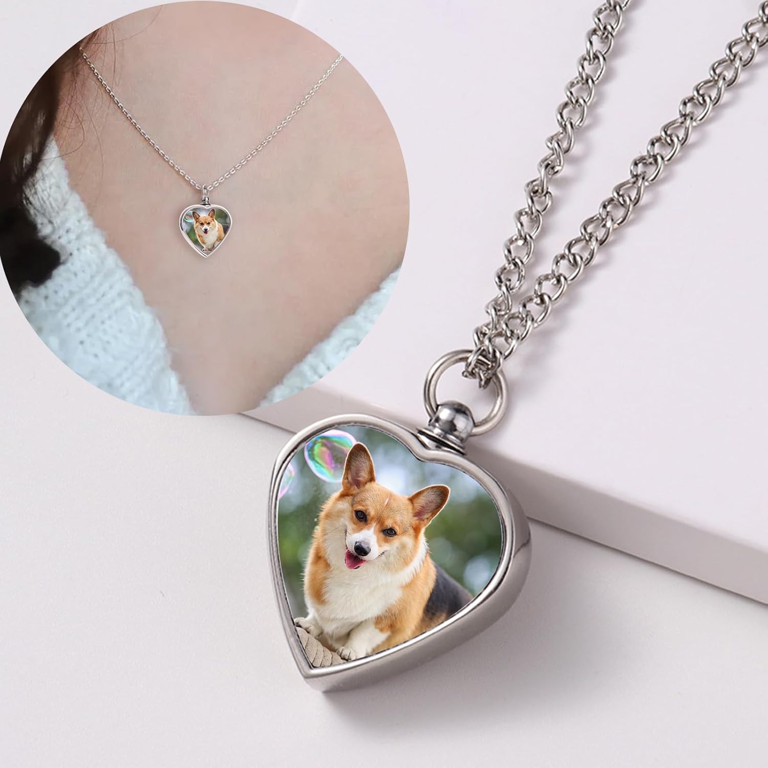 Custom Ashes Necklace Pet Memorial Gift with Photo Text,Personalized Dog/Cat Cremation Jewelry Keepsake.Double-sided customized heart-shaped pendant urn necklaces for dog cat lover Women and Men