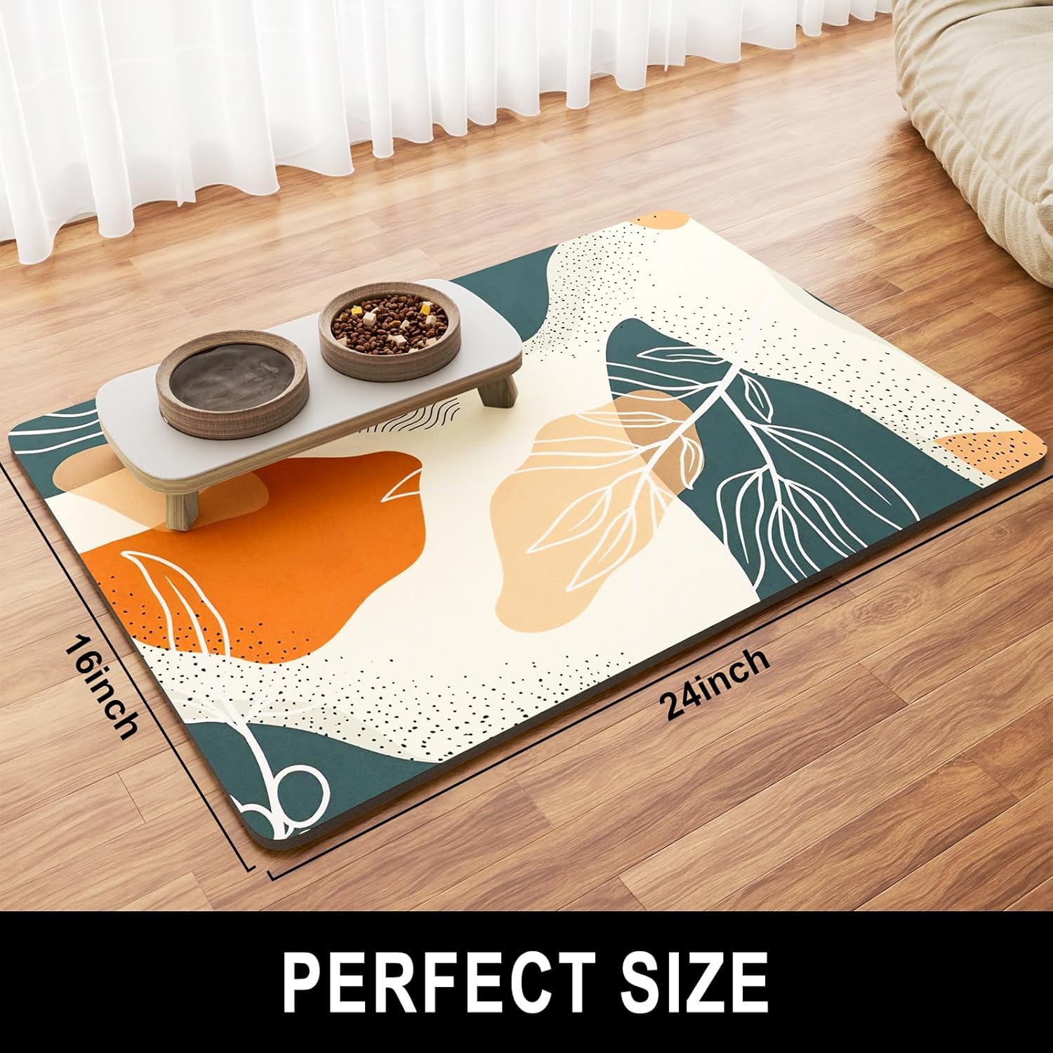 Dog Food Mat, 16" x 24" Boho Absorbent Dog Cat Bowl Mat for Food and Water, Cute Anti-Slip Rubber Pet Feeding Rug Protect Floors, Placemat for Feeding & Watering Supplies, Boho Abstract