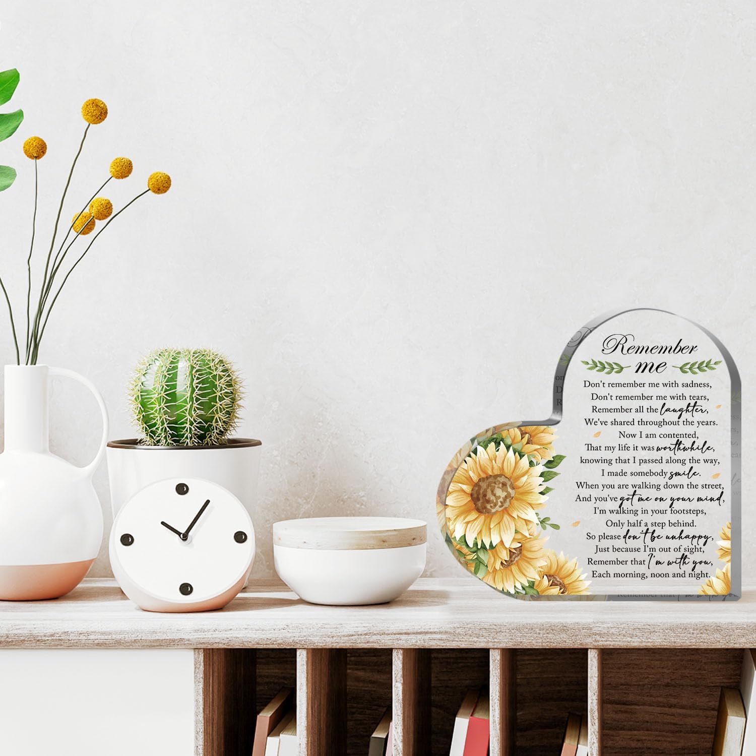 - 【Freestanding Decoration】The unique sympathy remembrance gifts has a flat and smooth bottom, so it can stand upright on many flat surfaces, tabletops, mantels, bookshelves, shelves or fireplaces, no support required, no assistive tools required. This acrylic heart unique memorial sympathy gifts is the oldest way to commemorate them for a long time