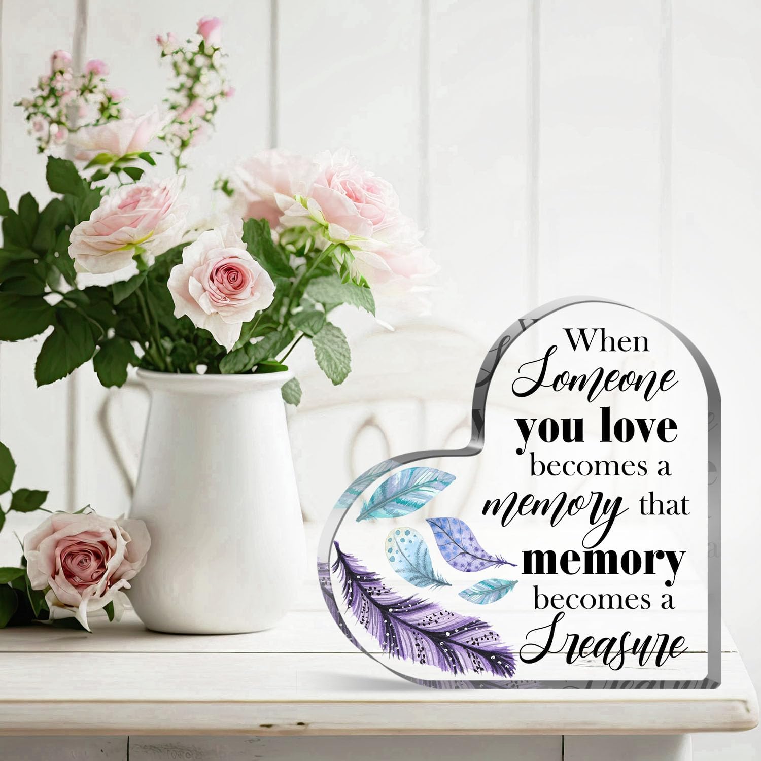 - 【Freestanding Decoration】The sympathy gifts for loss of loved one for passed loved ones has a flat and smooth bottom, so it can stand upright on many flat surfaces, tabletops, mantels, bookshelves, shelves or fireplaces, no support required, no assistive tools required. This acrylic heart unique memorial sympathy gifts is the oldest way to commemorate them for a long time