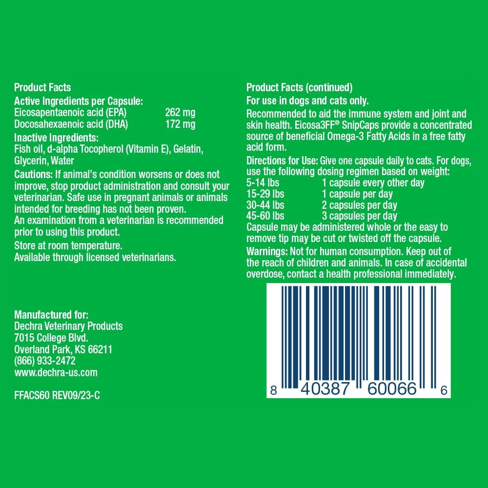 Eicosa3FF SnipCaps Omega 3 Free Fatty Acid Capsules for Dogs and Cats - Small, 60 ct