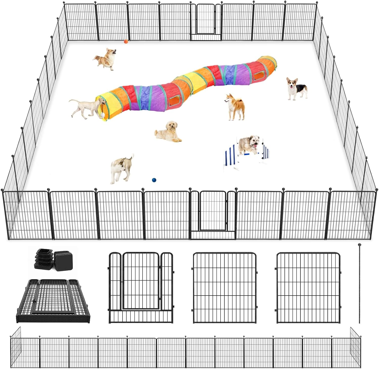 - 【Upgraded Size & Large Space】: This dog playpen outdoor is 27.5 "W x 32" H, upgraded to a larger size and more steel wire connections, available for 10-40 panels of different sets and a maximum space of 669 square feet. This interactive pet pen is suitable for small/medium/large dogs and other animals, such as Labrador dogs, golden dogs, wolf dogs, puppies, cats, rabbits, ducks, chickens, and rabbits