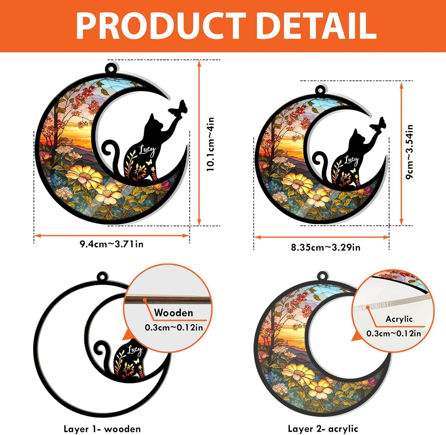 NAZENTI Loss of Cat Sympathy Gift, Pet Memorial Suncatcher, Custom Name, Remembrance Gifts for Cat Lovers, Christmas Pet Ornament