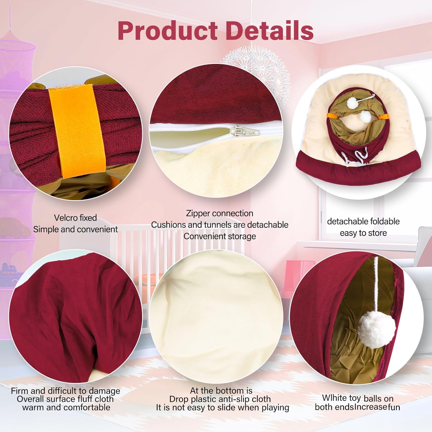 - Detachable Design: The rabbit bed tunnel is the ideal pet bed and rabbit tunnels for indoor rabbits interactive. The cushion and tunnel can be removed for easy washing.