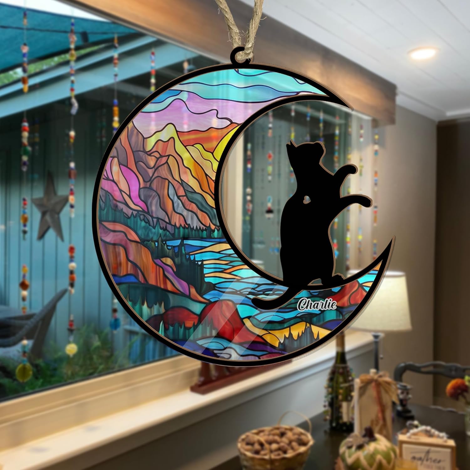 Personalized Cat Memorial Suncatcher Ornament - Custom Name Decor, Christmas Ornament, Pet Remembrance Keepsake, in Loving Memory Gift for Cat Lover, Loss of Pet Sympathy
