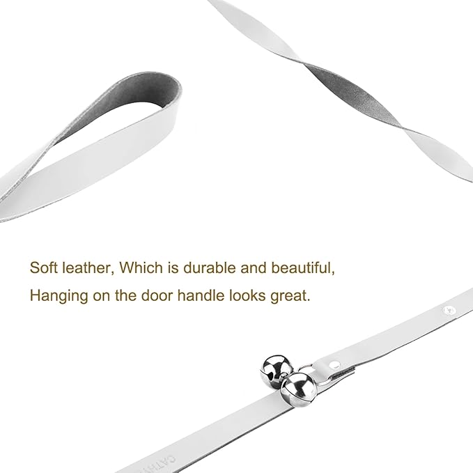 Leather Dog Doorbells for Door Knob/Potty Training/Go Outside, Length Adjustment Copper Dog Bell, Housetraining Hanging Bell, White Leather Silver Bells