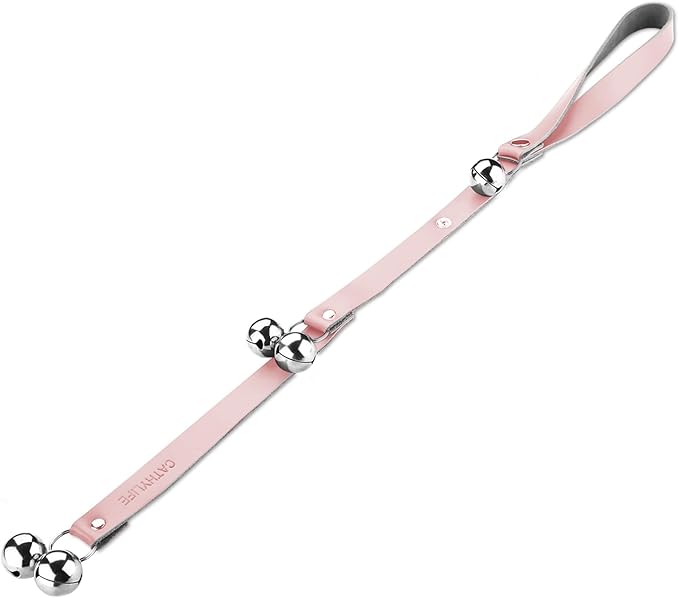 Leather Dog Doorbells for Door Knob/Potty Training/Go Outside, Length Adjustment Copper Dog Bell, Housetraining Hanging Bell, Pink Leather Silver Bells