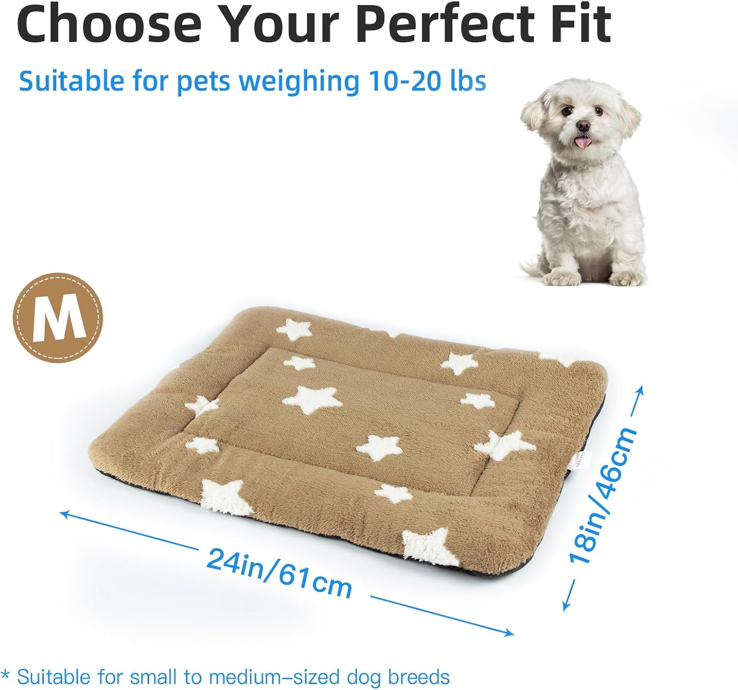 Mora Pets Dog Crate Pad Kennel Bed Crate Mat for Small Dogs Washable Cute Star Pet Bed for Dog Cage Ultra Soft Flat Puppy Cat Kitten Pillow Cushion for Sleeping Anti-Slip Brown 24 x 18