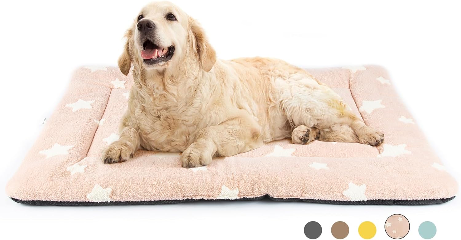 Mora Pets Dog Crate Pad Dog Kennel Bed Crate Mat for Large Dogs Washable Cute Star Pet Bed for Cage Ultra Soft Flat Pillow Cushion for Cozy Sleeping Anti-Slip Pink 42 x 27