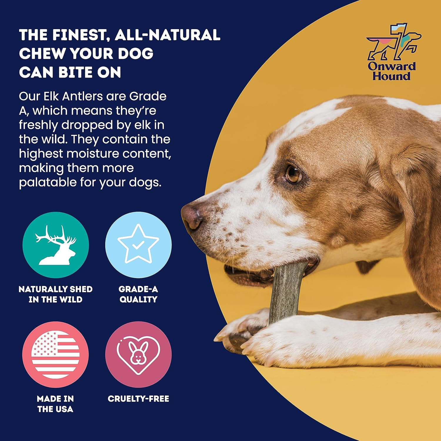 Onward Hound Elk Antlers for Dogs, 8"+ XL 1-Pack, Grade A Long Lasting Chew for Aggressive Chewers, Premium USA Naturally Shed Antler - Healthy, No Odor, Durable Dog Chew for 60-95lb Breeds
