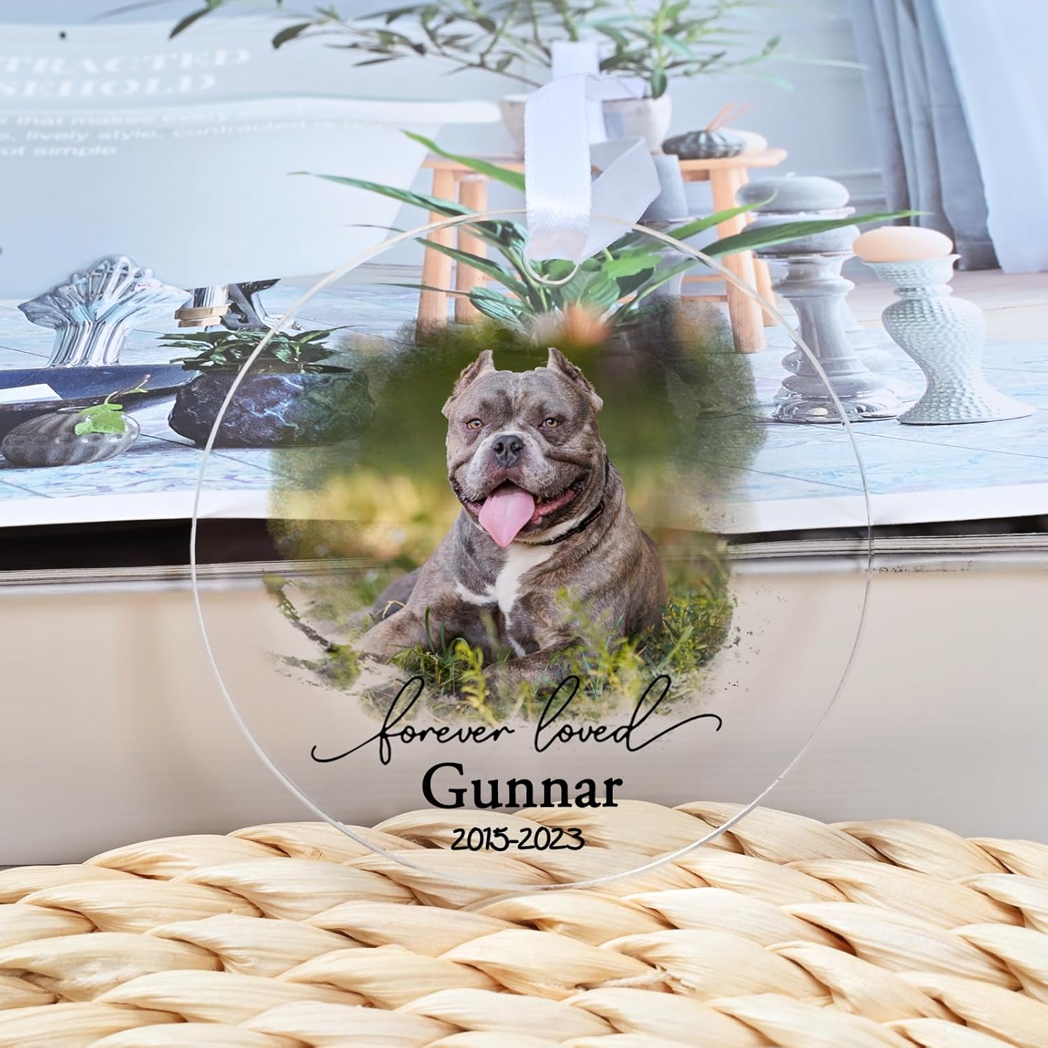 - High Quality Ornaments: The personalized pet memorial Christmas ornaments is made of high-quality acrylic, high-quality and non-fading. Christmas ornaments diameter is about 2.8", which is easy to carry or give gift. This is a great memorial gift to give to friends and family who lost their pets.
