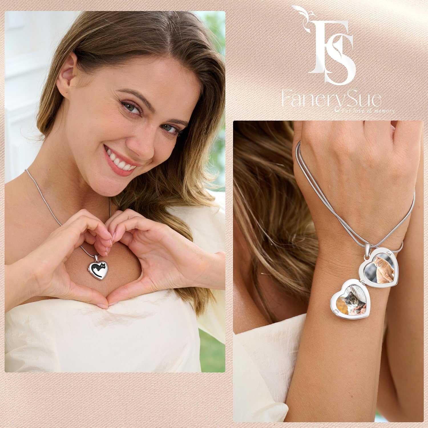 Fanery Sue Personalized Customized Pet Locket Necklace, Heart Lockets Picture Necklaces Dog Memorial Gifts Cat Sympathy for Women Men