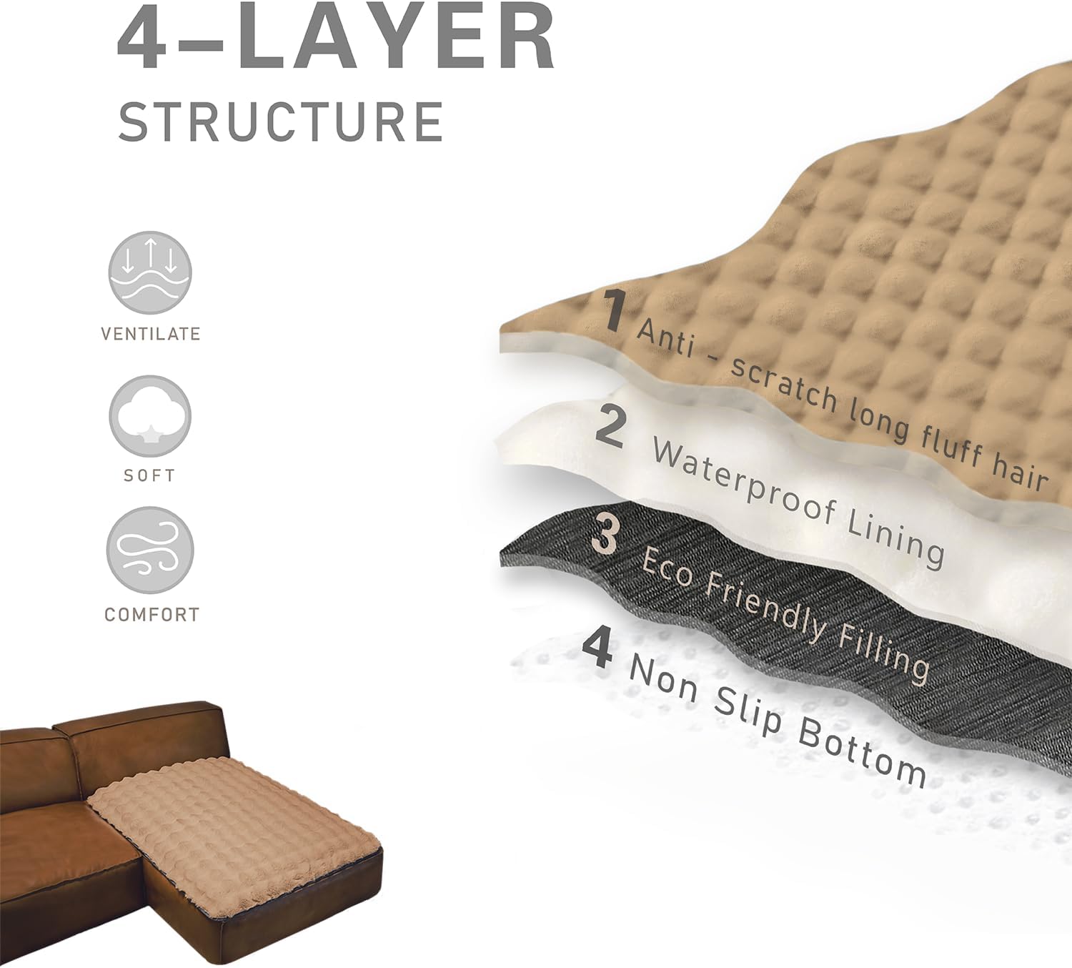 - Waterproof: The pet bed cover has a waterproof lining between the long, imitation fur outer layer and the slip-resistant underside to guard your furniture from moisture, mishaps, and dirt.
