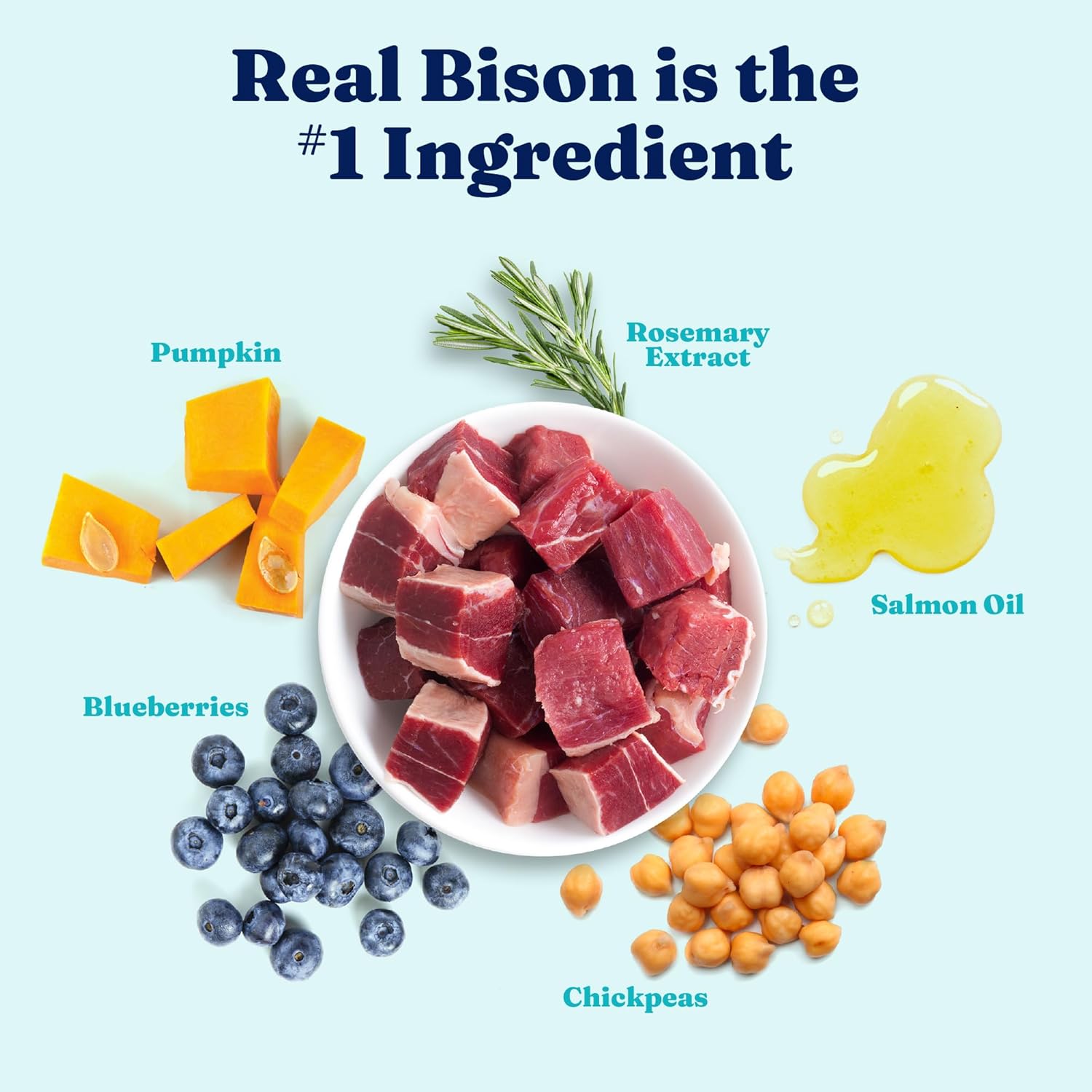- Real Bison for Strong Muscles - With pasture-raised bison, this protein-rich small breed dry dog food supports lean muscle mass--a tasty dog food small dog kibble for dogs who need healthy, delicious dry dog food without fillers or by-products