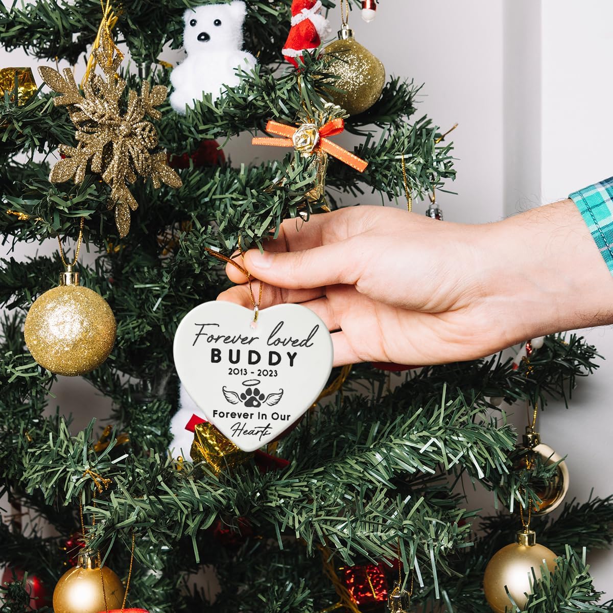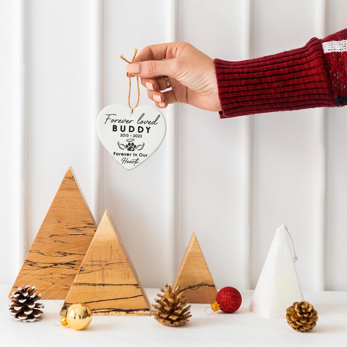 Pet Memorial Ornament - Heart Ceramic Ornaments Hanging for Christmas Tree - Remember Your Beloved Pet Forever