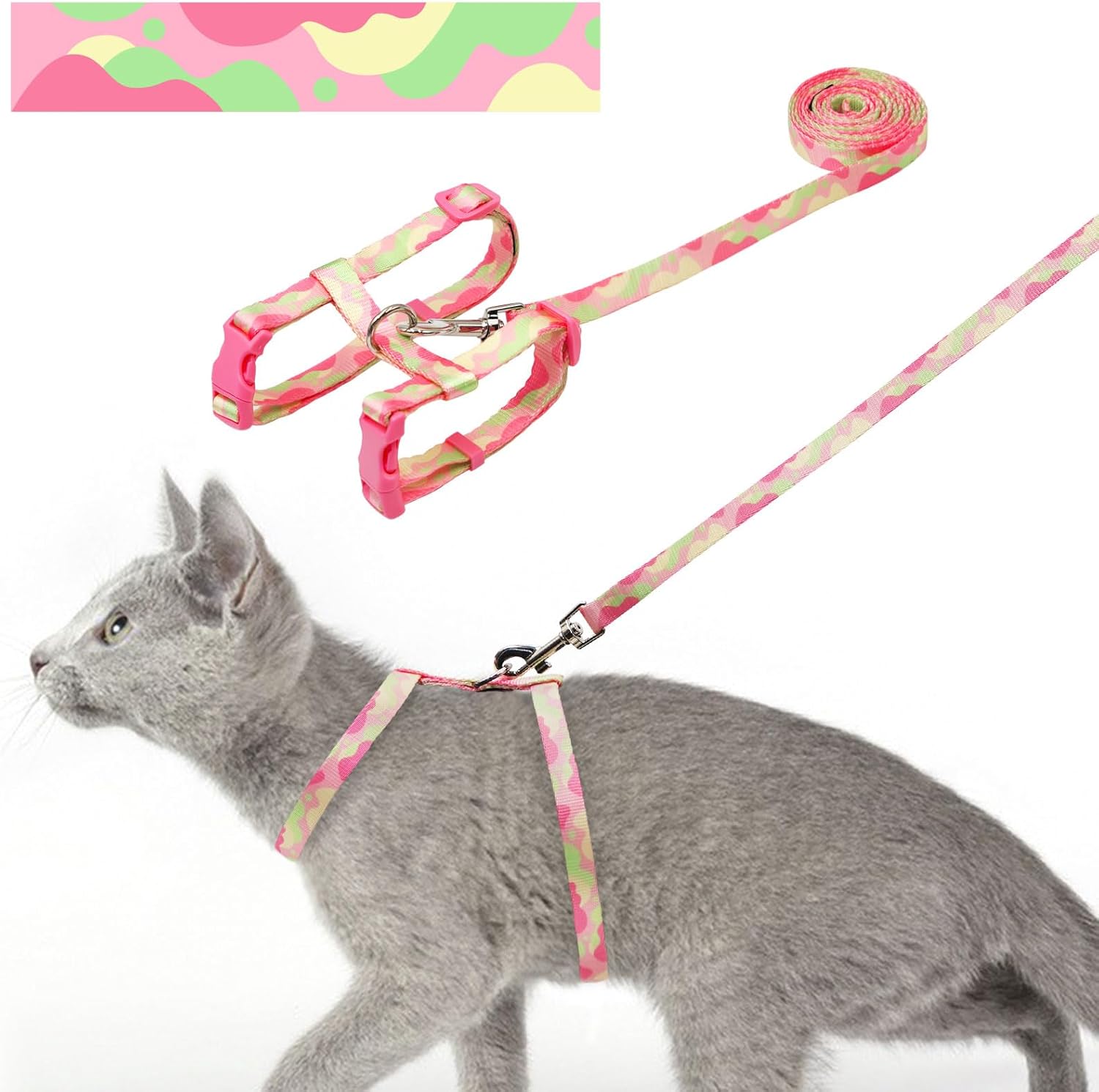azuza Cat Harness and Leash Set for Safe Walking and Travel, Escape Proof Cat Harness, Lightweight Soft and Comfortable, Adjustable Kitten Harness for Small Medium Large Cats, Pink Camo