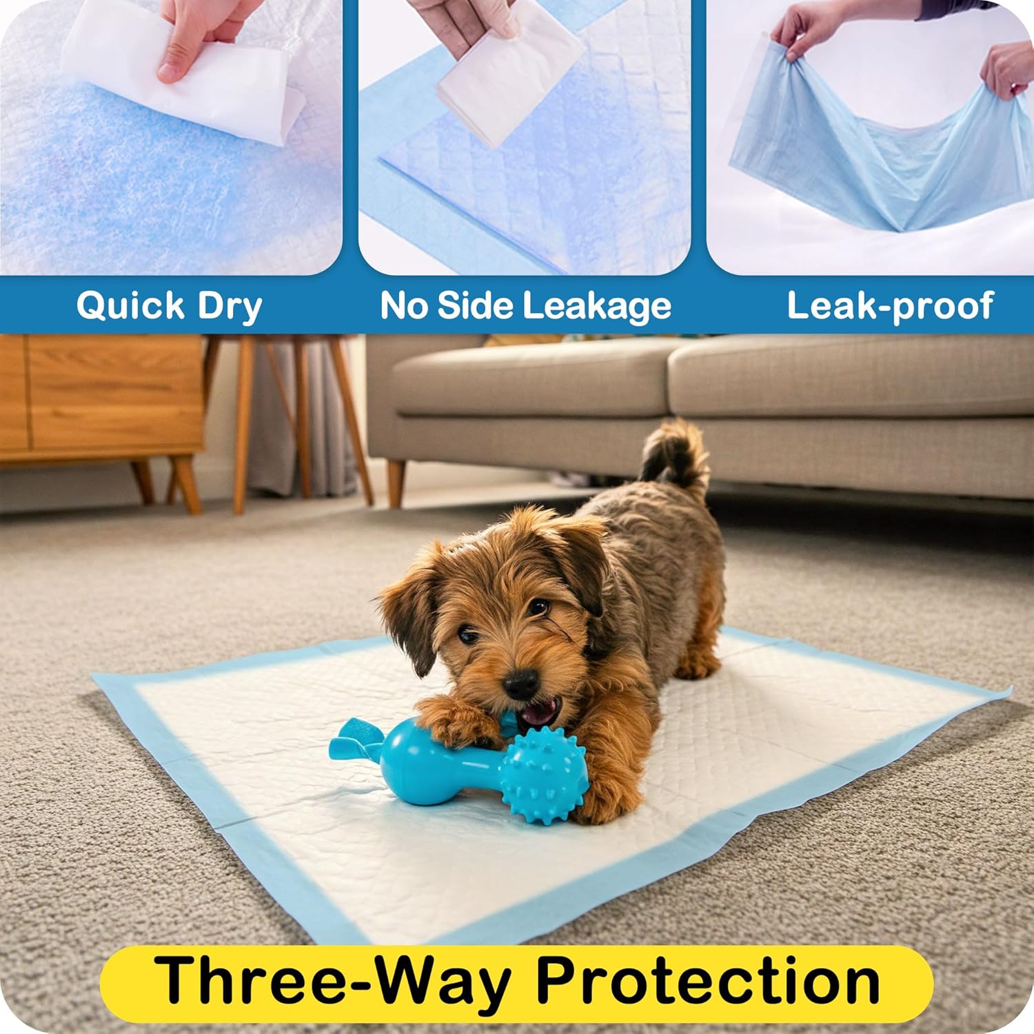 - 【Leak-Proof Dog Pads with Floor Protection】:Each pad includes a waterproof backing to shield your floors. Whether you place them on hardwood, carpet, or tile, these dog pads create a reliable barrier. The quilted surface absorbs quickly, making them excellent dog pee pads for everyday use