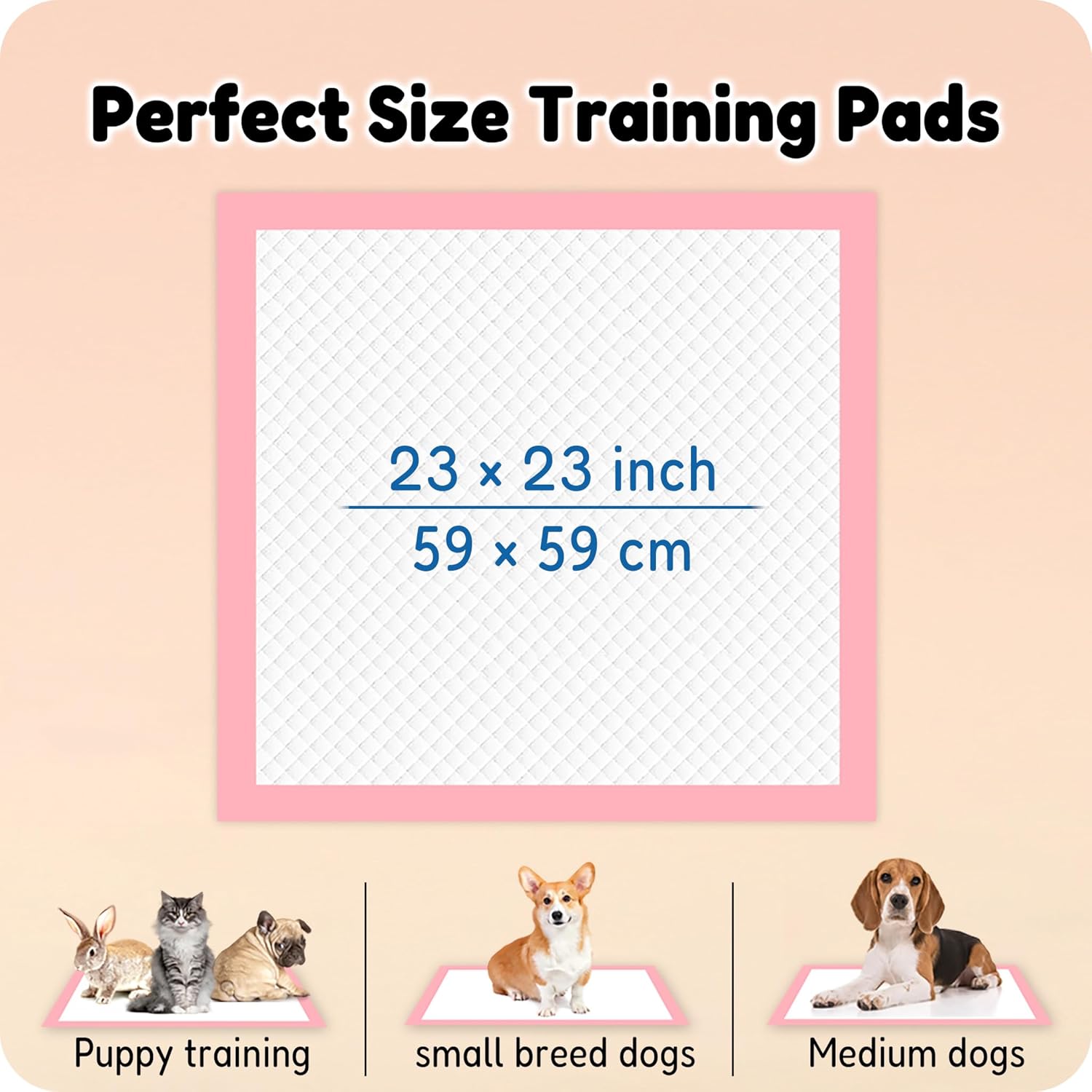 MoMoCo 23"x23"-100 Count Pink Puppy Pads, Super Absorbent, Leak-Proof, Quick-Dry Training Pads for Small Dogs & Puppies, Disposable Potty Pads