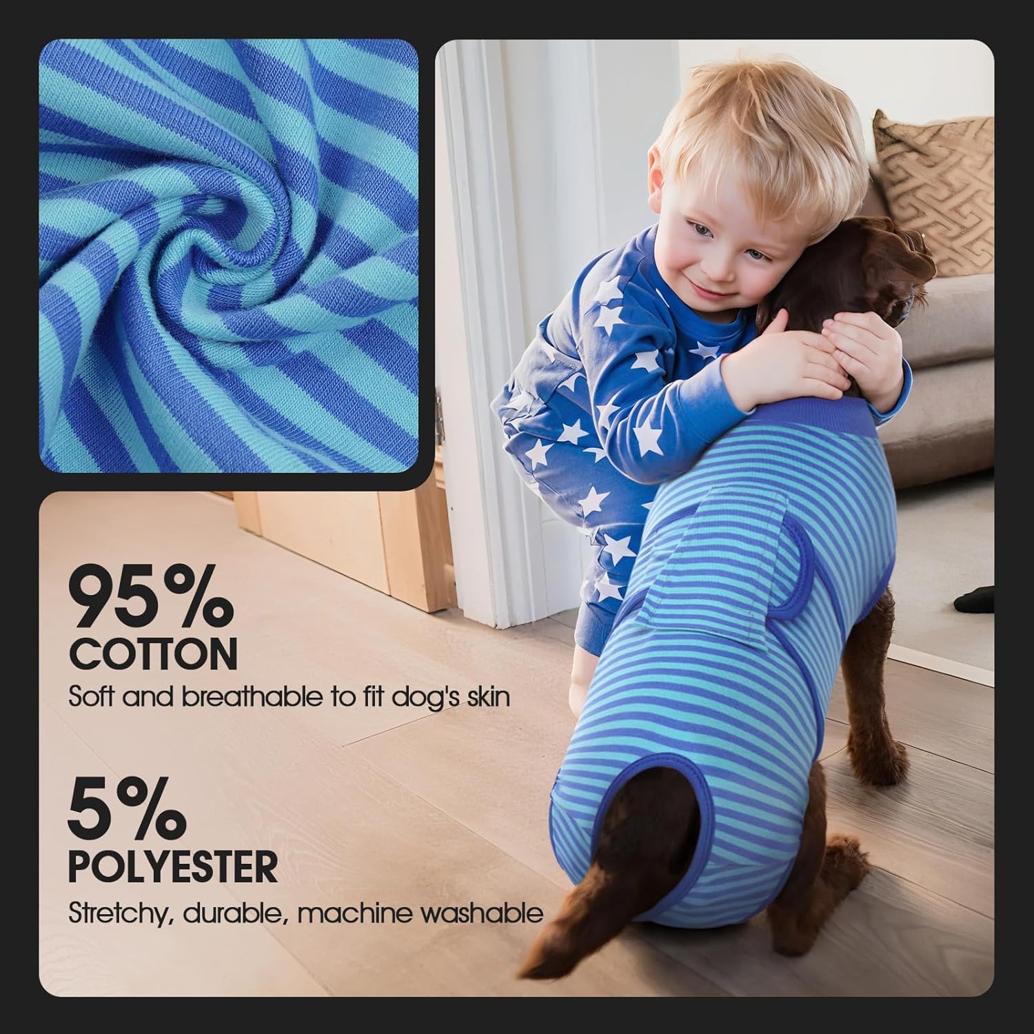 - [BREATHABLE FABRIC]: Our dog recovery suit is made of 95% cotton and 5% spandex. The recovery shirt is highly elastic and breathable, allowing the dog to feel comfortable and move freely after wearing it. No deformation after machine wash.