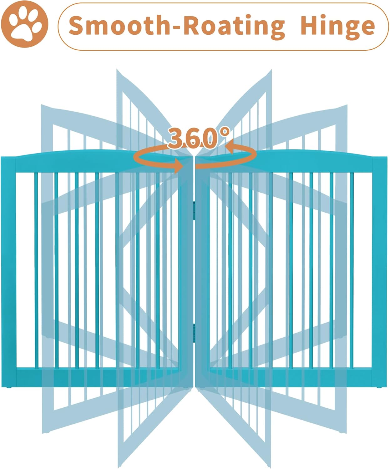 - 【Sturdy and Durable Construction】: Made with high-quality MDF materials, this pet gates for dogs are sturdy and durable. The exclusive metal support feet included with the walk through pet gate provide added stability and security, ensuring that the freestanding dog gates remains in place and does not wobble or tip over. Sturdy hinges that can rotate 360° to accommodate different shapes.