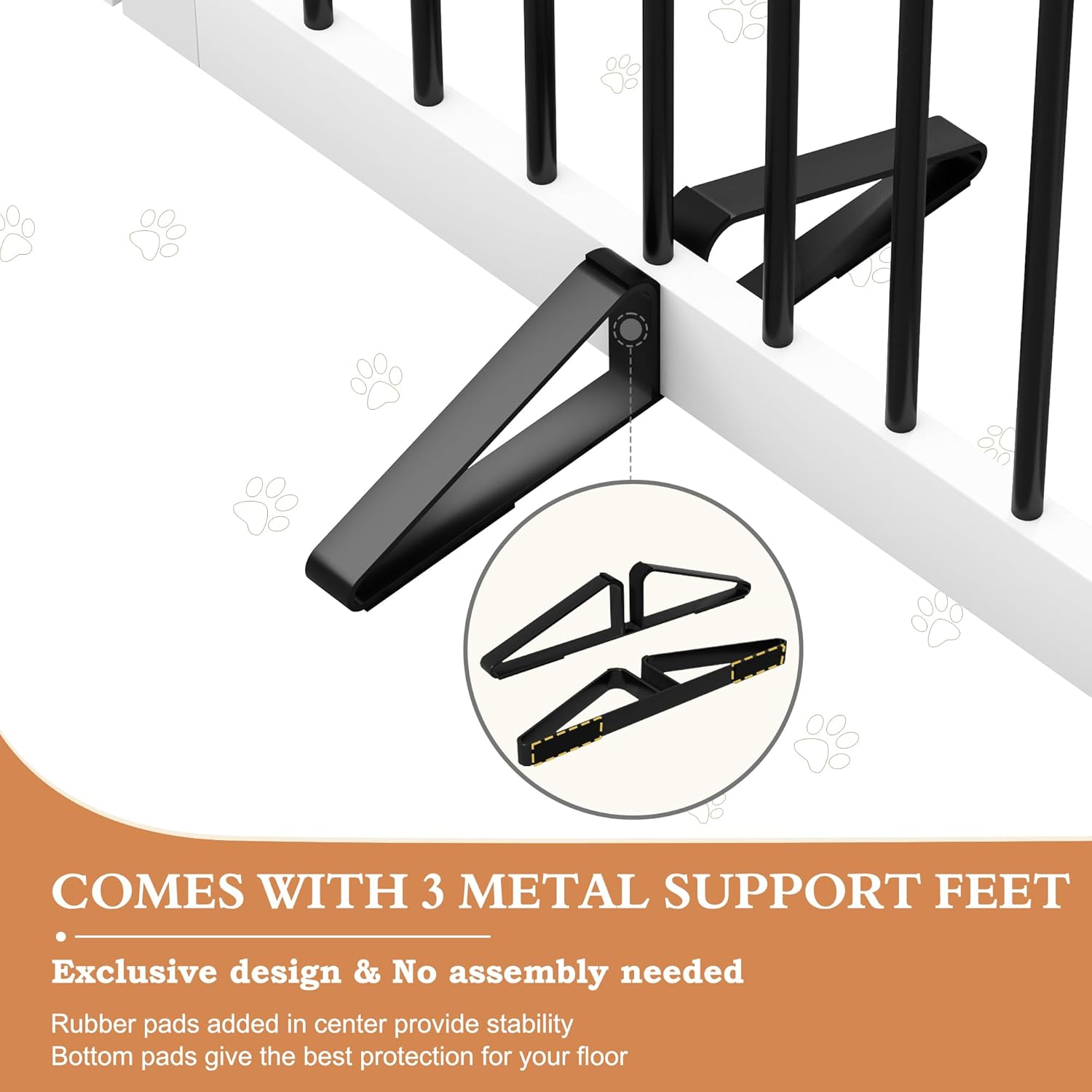 - 【Sturdy and Durable Construction】: Made with high-quality MDF materials, this pet gates for dogs are sturdy and durable. The exclusive metal support feet included with the walk through pet gate provide added stability and security, ensuring that the freestanding dog gates remains in place and does not wobble or tip over. Sturdy hinges that can rotate 360° to accommodate different shapes.