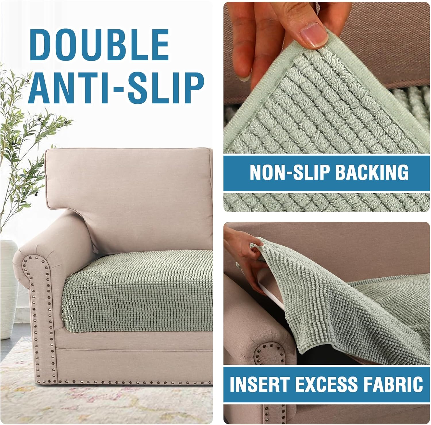 H.VERSAILTEX Plush Chenille Dog Bed Cover Thick Soft Loveseat Cover for 2 Cushion Couch Anti Slip Couch Cover Furniture Protector for Dog, Pet, Cat (35" x 62", Sea Foam)