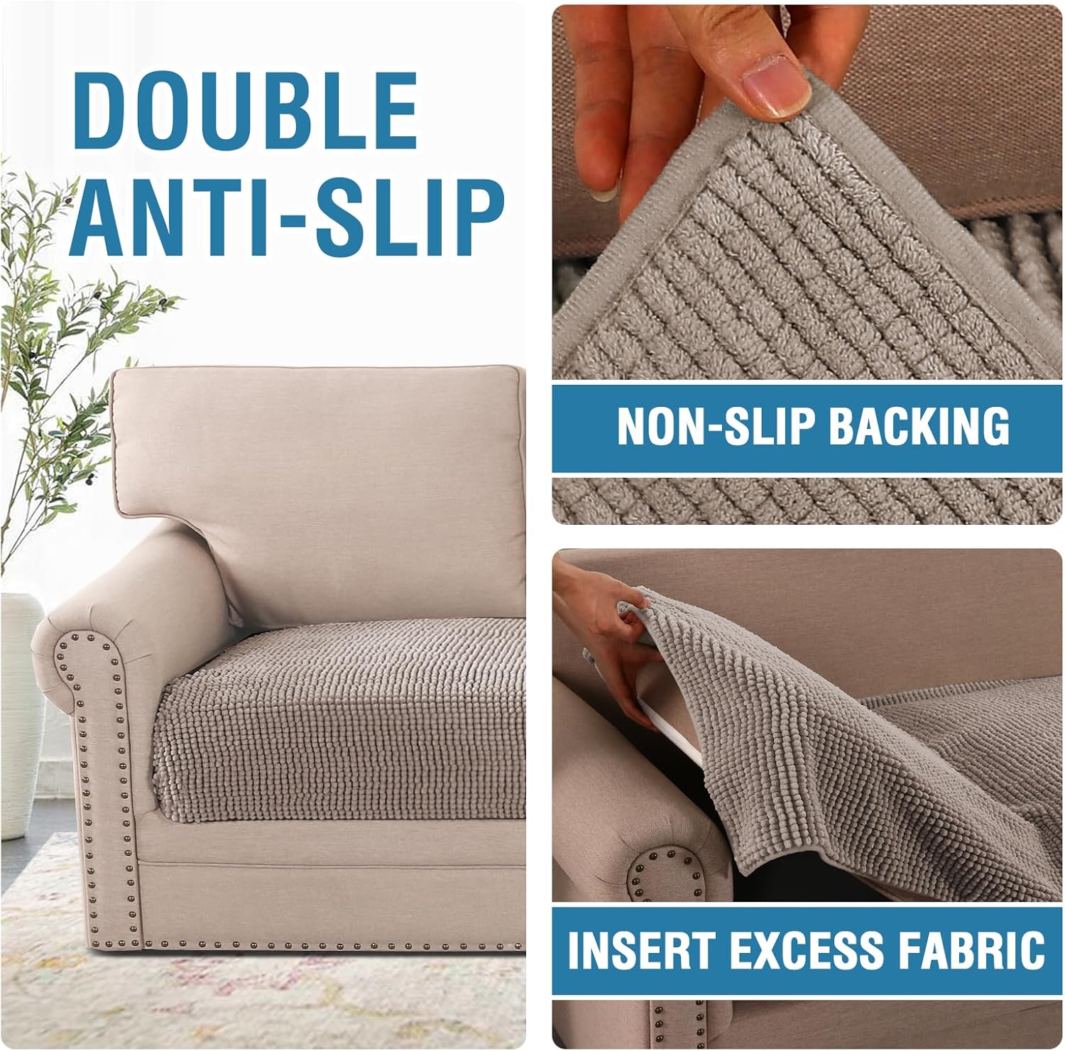 H.VERSAILTEX Plush Chenille Dog Bed Cover Thick Soft Sofa Cover for 3 Cushion Couch Anti Slip Couch Cover Furniture Protector for Dog, Pet, Cat (35" x 82", Taupe)
