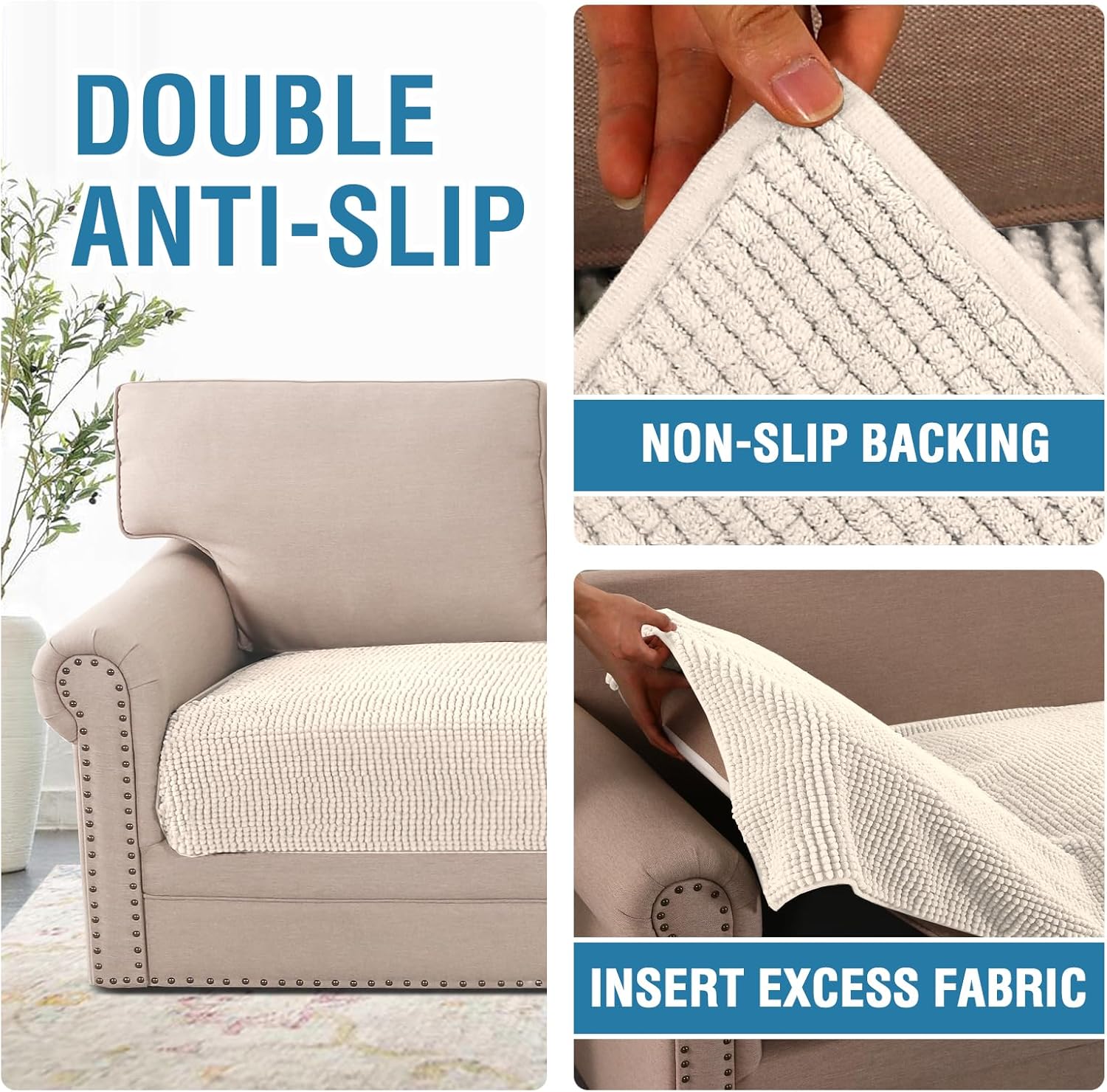H.VERSAILTEX Plush Chenille Dog Bed Cover Thick Soft Sofa Covers Loveseat Cover for 2 Cushion Couch Anti Slip Couch Cover Furniture Protector for Dog, Pet, Cat (35" x 62", Ivory)