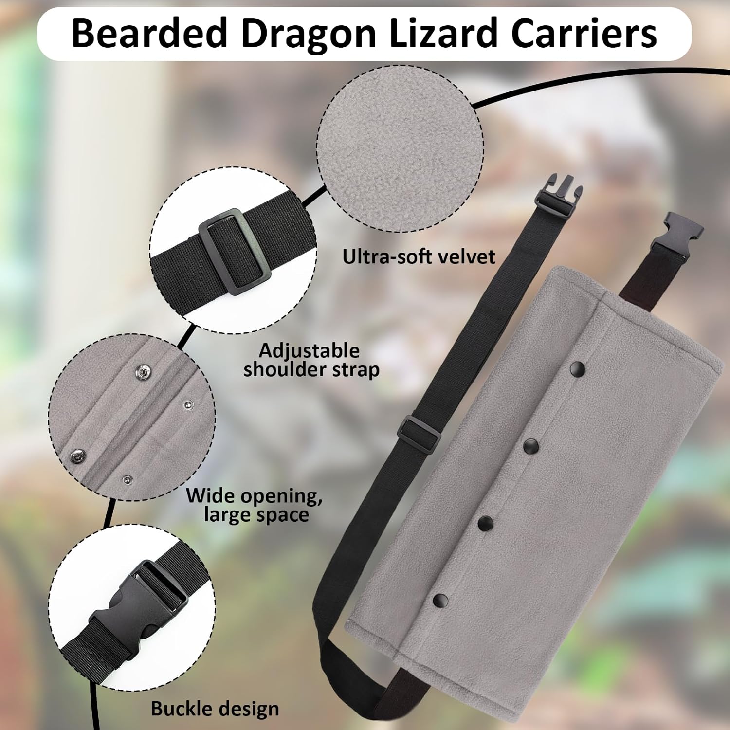 - [Comfortable and Stylish Bearded Dragon Carriers Bag] Crafted from soft, breathable, and coral fleece, this bearded dragon backpack comes with adjustable shoulder straps, ensuring your pet stays secure and cozy during adventures. It not only enhances safety during outdoor and indoor trips but also adds a fashionable touches to your pet's attire.