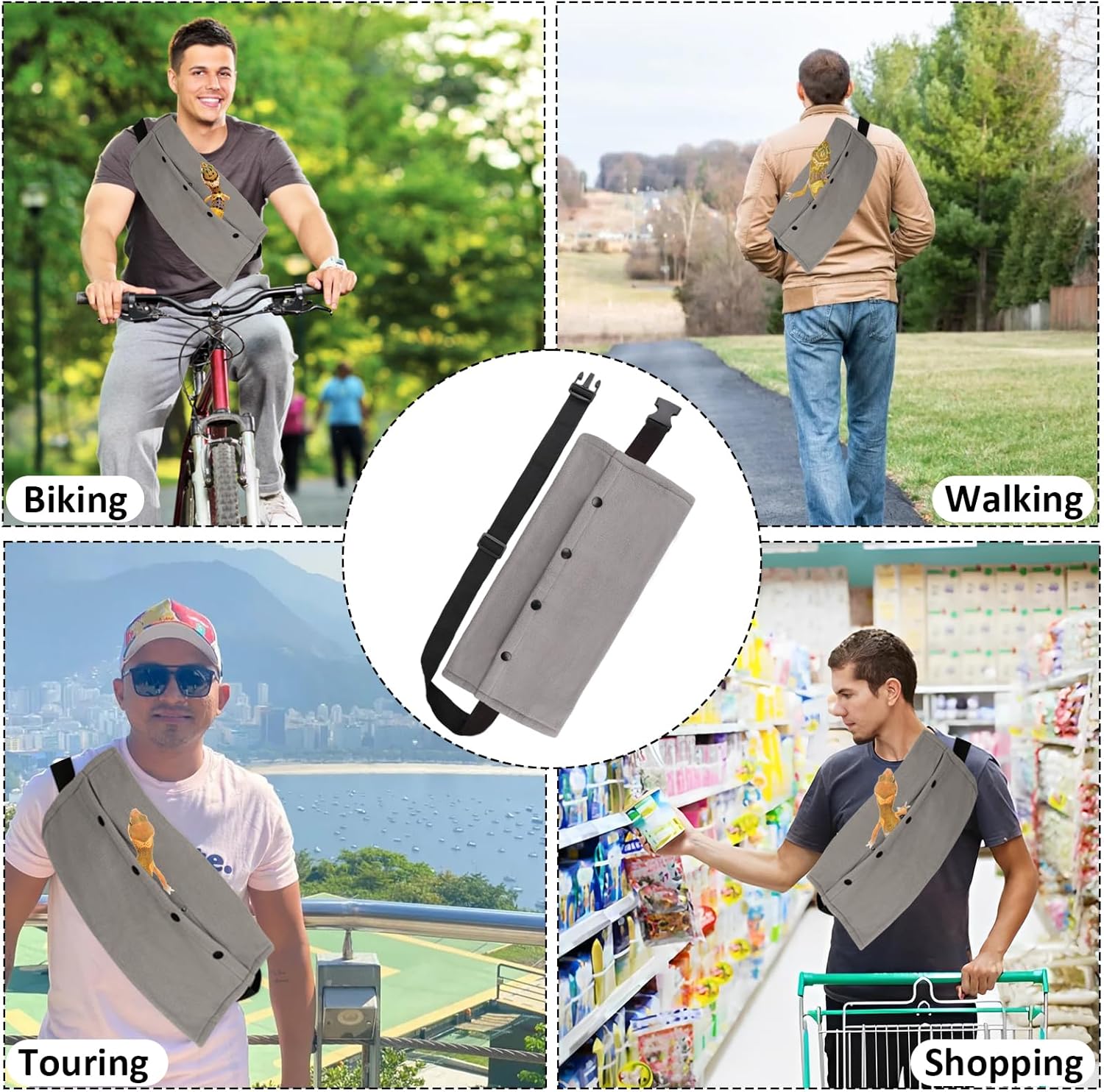 - [Suitable for Various Small Pets] Our bearded dragon leash and carriers set is not just for bearded dragons; it's also perfect to other small pets such as geckos, crested geckos, lizards, chameleons, and more. Give your reptilian friends a safe and stylish mode of transport and leash-walking option.