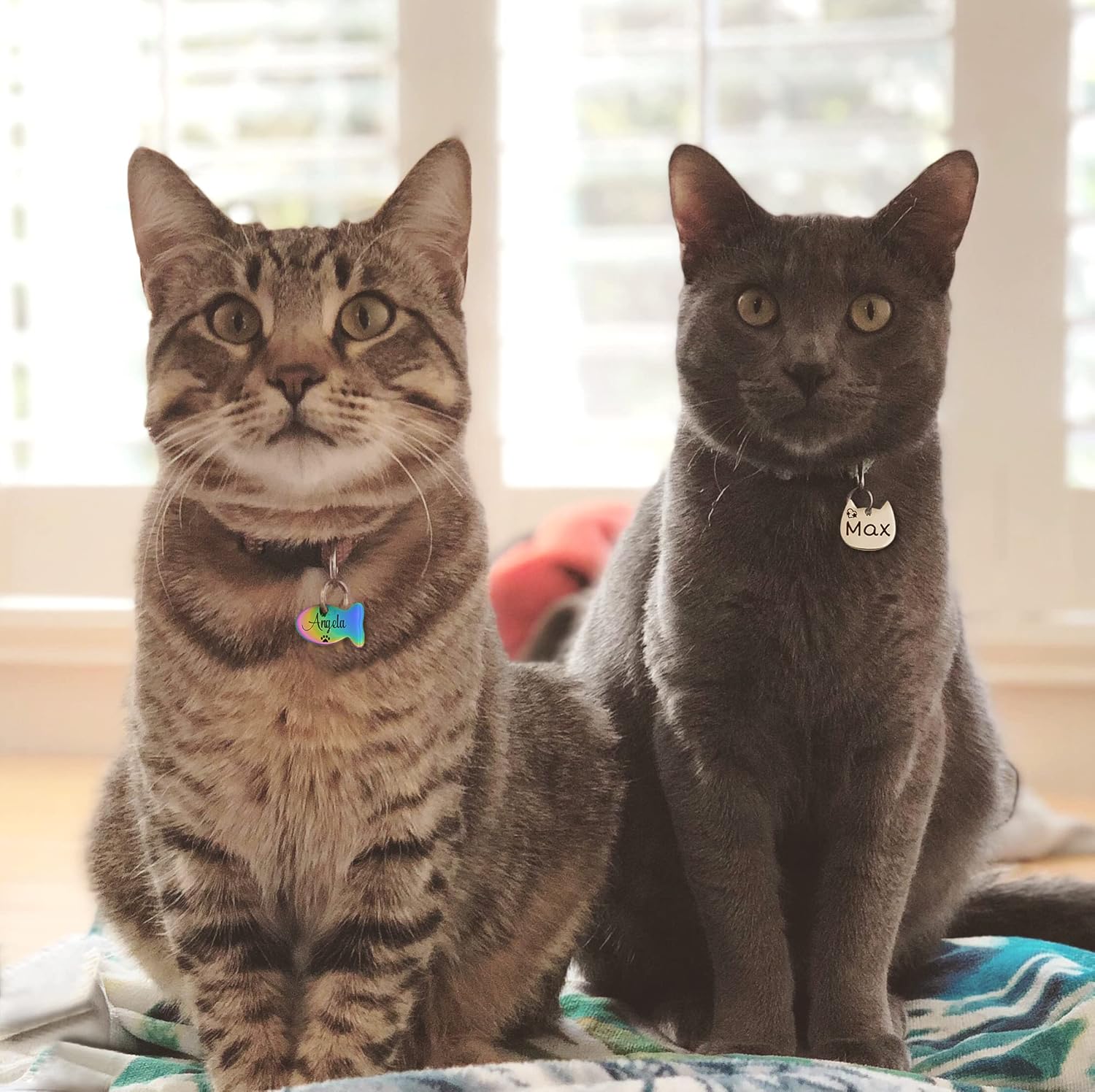 - Cute Font Design Pet ID Tags for Small Size Dog Cat - Personalized laser engraved pet tags with your pet's name, icons and pattern design. A well-designed cute fashion name tag for your beloved dogs, cats, or other pets.