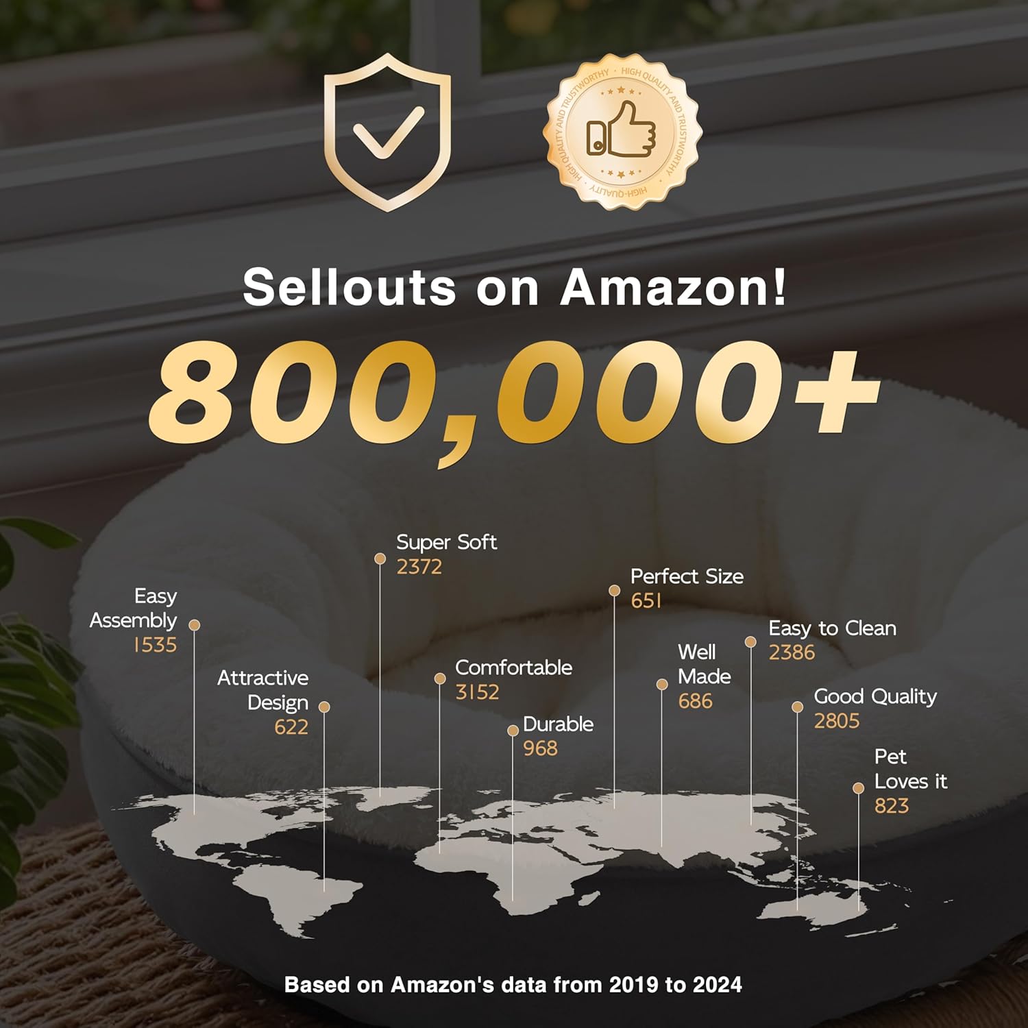 - Donut Cuddler Shape: The round dog bed allows pets to curl up while the raised rim creates a sense of security and provides head and neck support. Premium ultra-soft filling offers joint and muscle pain relief, is a great choice for elderly or sick dog pets. The 25 inch round pet bed is perfect for cat or puppy and other pets up to 30 lbs.