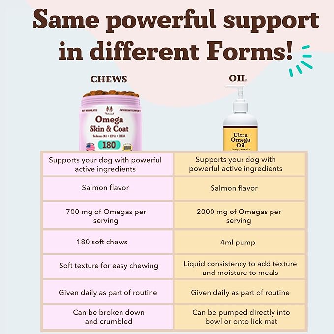- Soothing Itch Relief, Enhanced Comfort: Discover the relief your dog has been longing for with our Ultra Omega Oil for dogs. Abundant in omega 3,6 & 9 fatty acids, it's the perfect antidote to persistent itches and skin sensitivities, as verified by numerous happy pet owners.