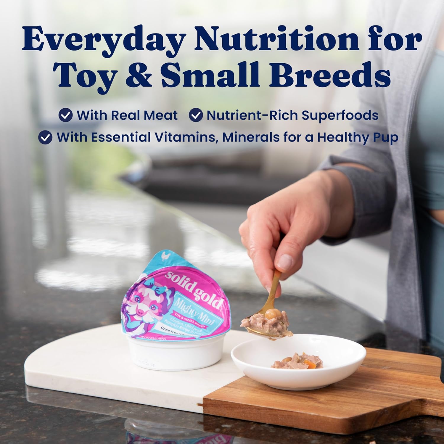 - Convenient Wet Food Cups for Any Meal – Serve this small dog wet food as a complete meal or a topper for Solid Gold dry food. Available in easy-to-serve cups, it’s a great choice for wet food dog meals, wet dog food cans & puppy wet food small breed