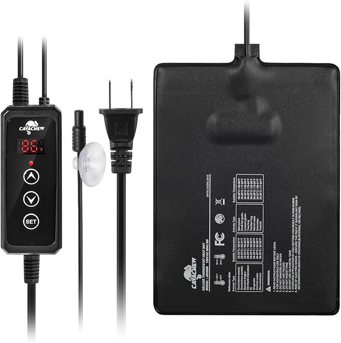 - Easy to Setup: Clean the surface of the glass tank and keep it dry, then stick the heating pad to the bottom or side, Then connect the power supply, set the temperature, and place the probe into the tank. Press both▲ and button ▼ for 2 seconds to change temperature unit to Fahrenheit or Celsius.