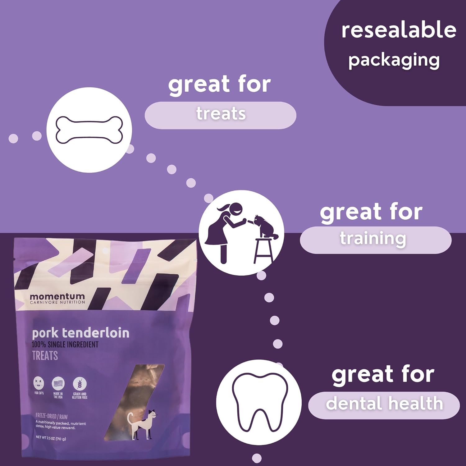 Momentum Carnivore Nutrition Freeze-Dried Pork Tenderloin Cat Treats – Single-Ingredient, All-Natural, Grain-Free Treats – 2.5 oz Bag