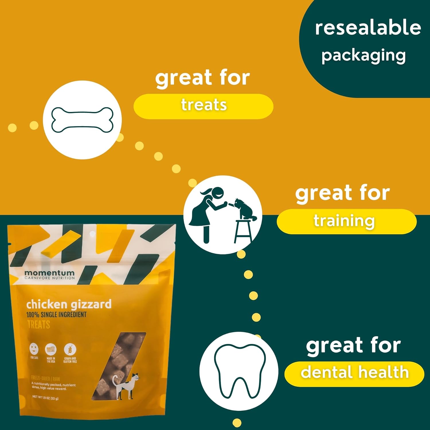Momentum Carnivore Nutrition Freeze-Dried Chicken Gizzard Cat Treats – Single-Ingredient, All-Natural, Grain-Free Treats – 1.9 oz Bag