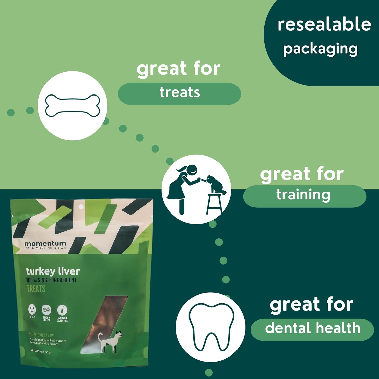 Momentum Carnivore Nutrition Freeze-Dried Turkey Liver Cat Treats – Single-Ingredient, All-Natural, Grain-Free Treats – 1.9 oz Bag
