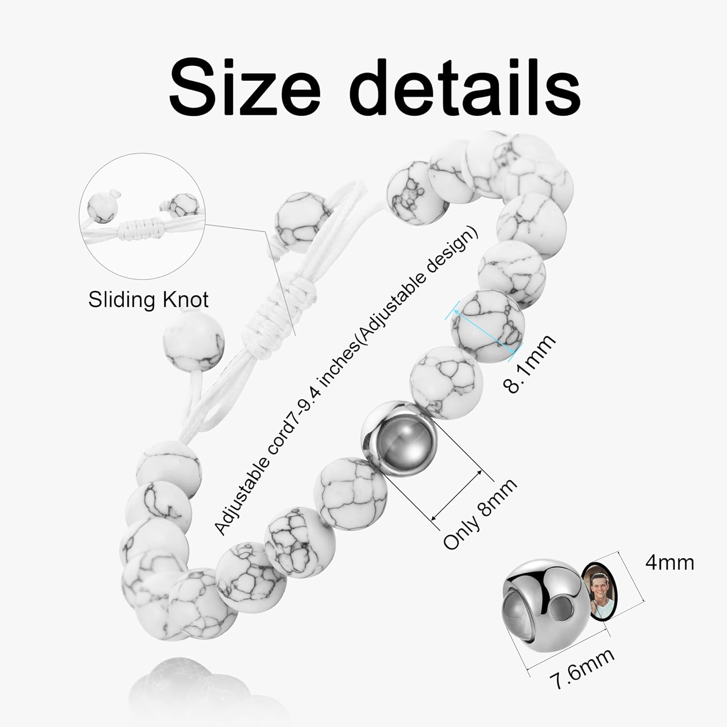 - [Personalize your treasured memories into a photo bracelet] - Only you can see and share the image engraved on the project stone. Personalize any image you like( men, dad, boyfriend, husband, son, grandson, uncle, brother, friend or have gone...)