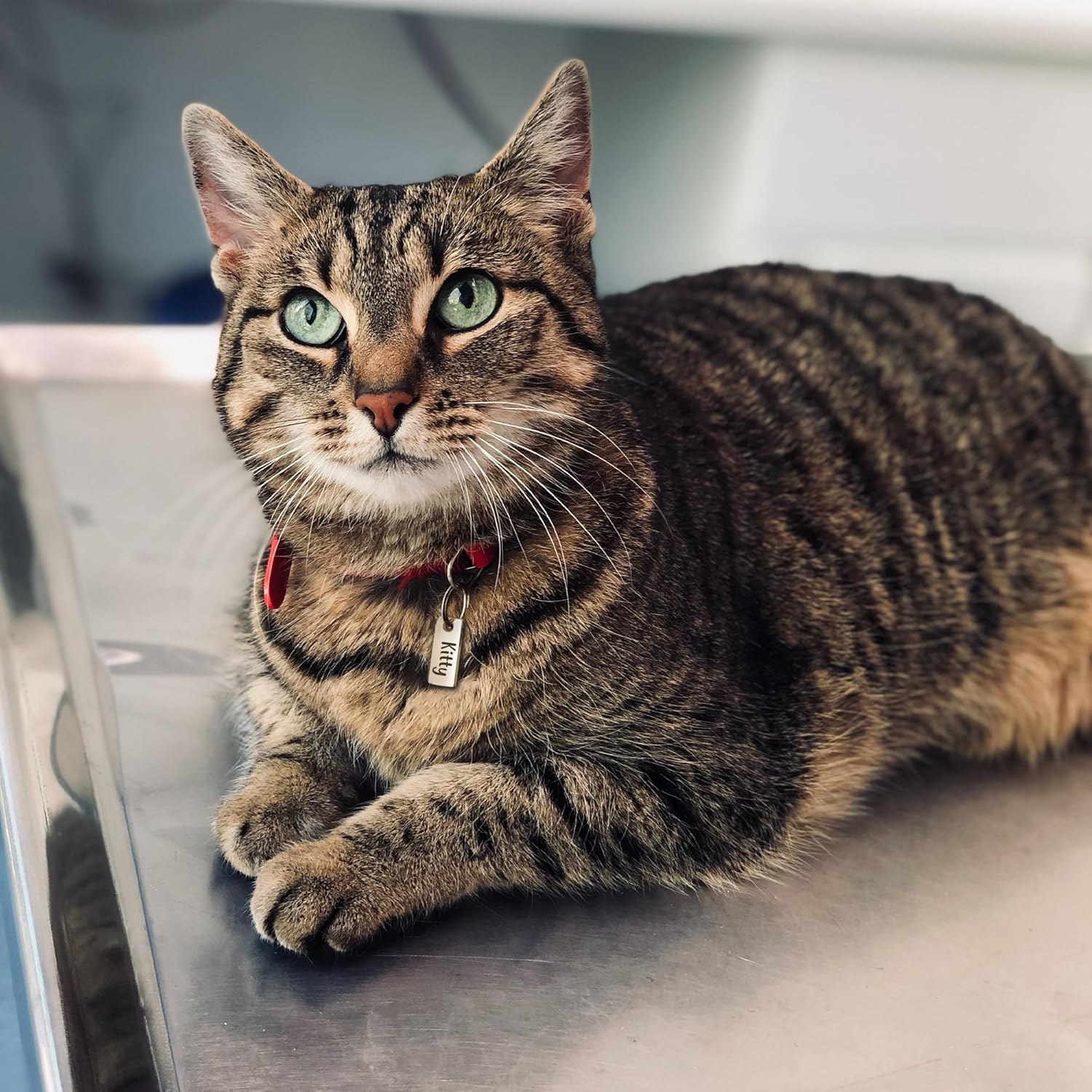 - Cute Font Design Pet ID Tags for Small Size Dog Cat - Personalized laser engraved pet tags with your pet's name, icons and pattern design. A well-designed cute fashion name tag for your beloved dogs, cats, or other pets.